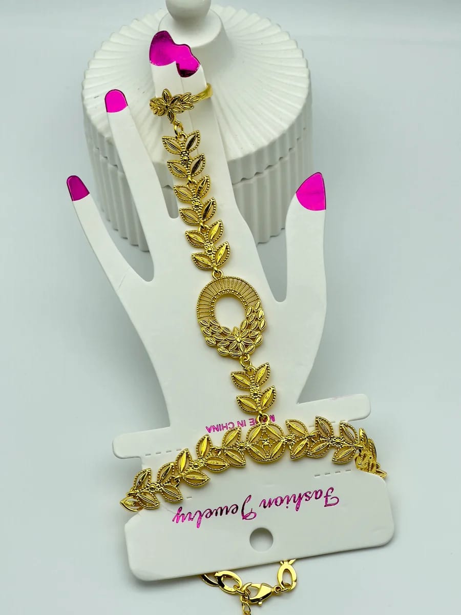 Jade'm Gold 24 Ayar Zarif Orta Doğu Lüks Çiçek ve Yaprak Bileklik Şahmeran