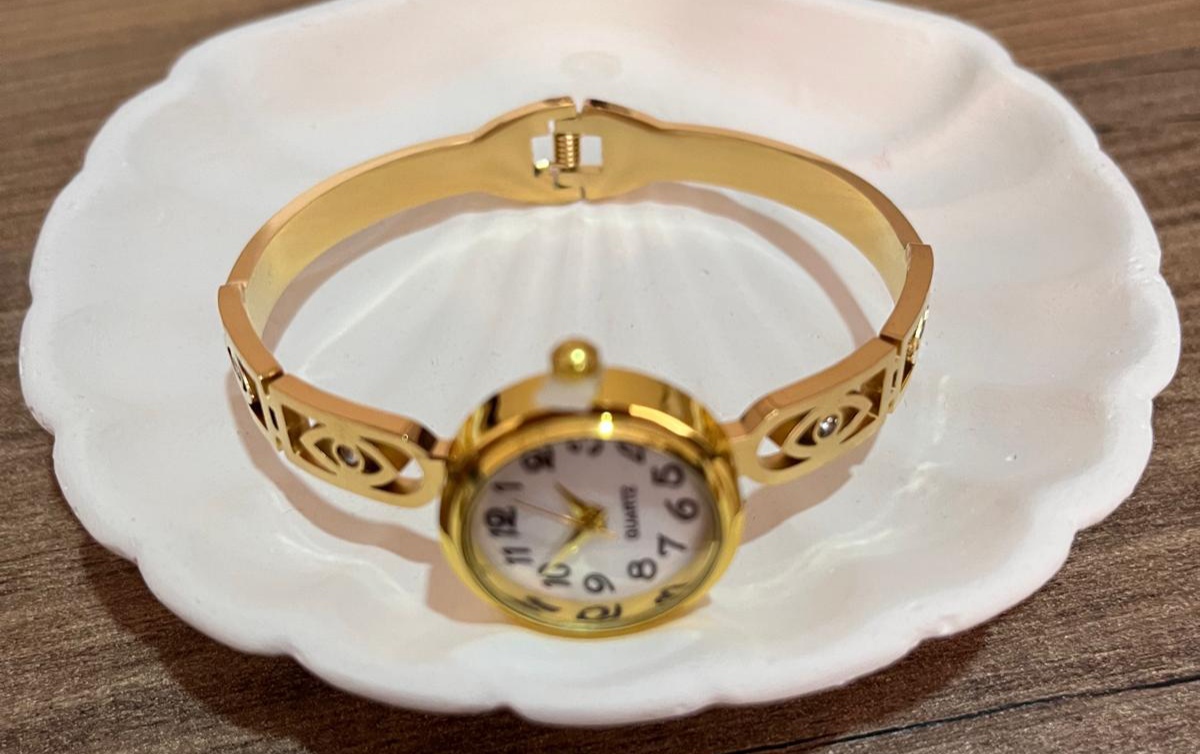 Jade'm Gold Çelik Saatlı Altın Kaplamalı Kelepçe, hem gündelik hem de özel davetler için ideal bir aksesuardır. Minimalist tasarımı onu her türlü kıyafetle kombinleyebilmenizi sağlar. Casual bir akşam yemeğinde veya özel bir etkinlikte, bu kelepçe ile her zaman şık ve zarif görünümünüzü tamamlayabilirsiniz.