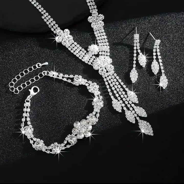 Jade'm Gold Zarif Lüks Çiçek ve Yaprak Püskül Gümüş Kaplamalı Kolye, Bilezik, Küpe Seti, stilinizi tamamlayacak ve her ortamda dikkatleri üzerinize çekecek bir parçadır. Hem kendinize hem de sevdiklerinize alabileceğiniz bu harika setle, zarafetin tadını çıkarın!