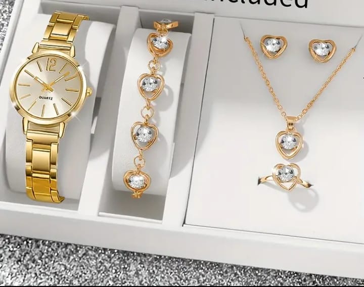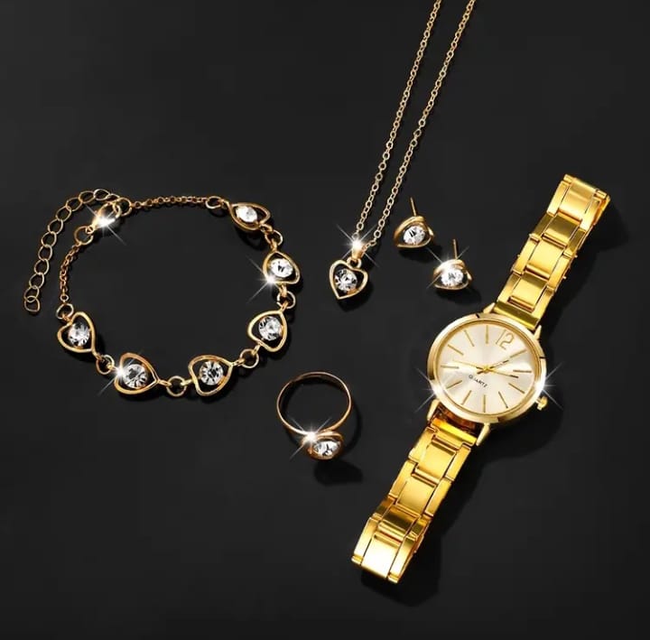 Göz alıcı tasarımı ve yüksek kalite standartlarına sahip olan bu 6 parça kadın kuvars saat ve kalp takı seti, özel günlerde sevdiklerinize hediye olarak da sunabilirsiniz. Şık ve lüks bir hediye seçeneği olması ile mutluluk ve sevgi dolu bir jest olacaktır.